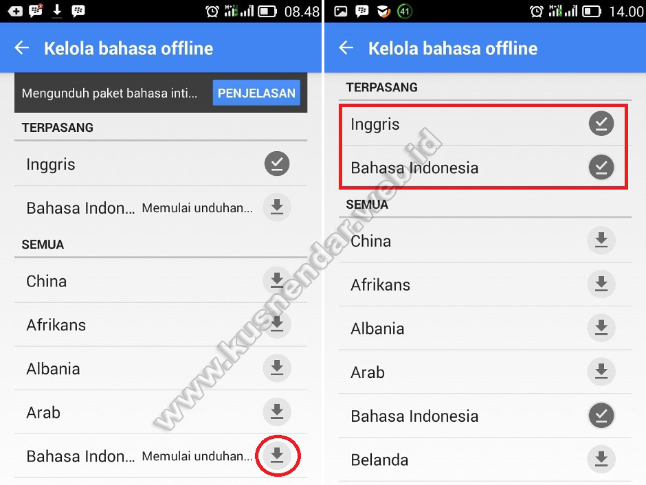 Nah untuk kosa kata Bahasa Inggris sudah terpasang otomatis, namun untuk kosa kata Bahasa Indonesia belum. Maka silahkan anda Download, caranya menentukan ikon Download di sebelah kanan “Bahasa Indonesia”.
